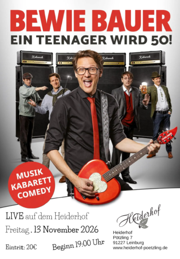 Auch in seinem zweiten Solo-Programm sprengt Bewie Bauer die Grenzen zwischen Stand-Up-Comedy, Parodie und Musikkabarett. In seinem rasanten Crossover-Programm geht es Schlag auf Schlag: Rocksongs mit Ohrwurmgarantie wechseln sich ab mit skurrilen Figuren aus seinem bayerischen Alltag. Dazu kommen noch seine pointierten Beobachtungen aus seinem Leben als Fast-50-Jähriger. Bewies persönliche Halftime Show ist nicht nur musikalisch, sondern manchmal auch nachdenklich und am Ende vor allem urkomisch. Selbstverständlich sieht man ihn auch in seiner Paraderolle als Gesundheitsminister Karl Lauterbach. Damit begeisterte er in den letzten Monaten nicht nur die BR-Zuschauer bei Günter Grünwald, sondern landete auch im Netz virale Hits bei TikTok und Youtube.